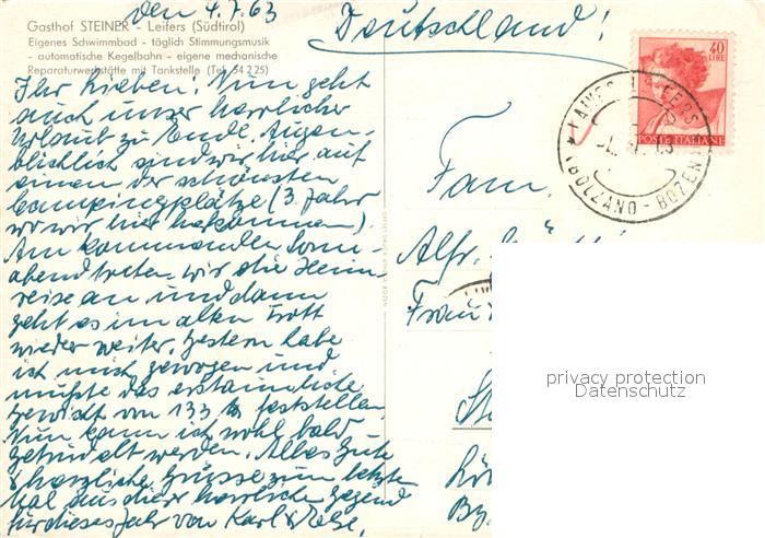 old postcard Leifers Laives Suedtirol Gasthof Steiner Freibad postalisch gelaufen Erhaltung siehe scans [WerneD78]