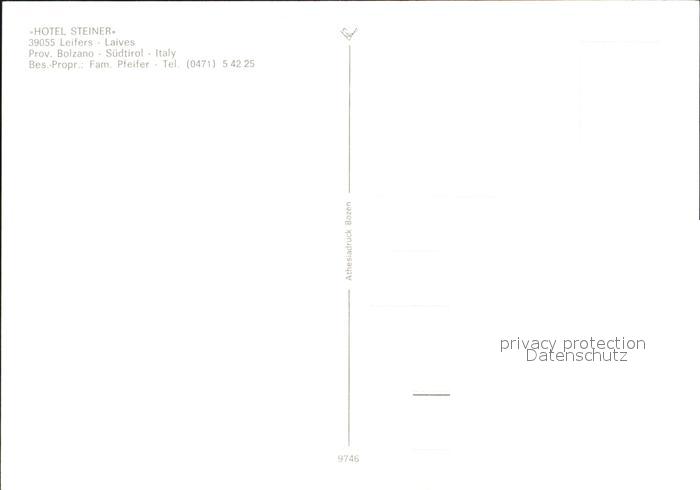 Leifers Laives Suedtirol Hotel Steiner postalisch nicht gelaufen Erhaltung siehe scans