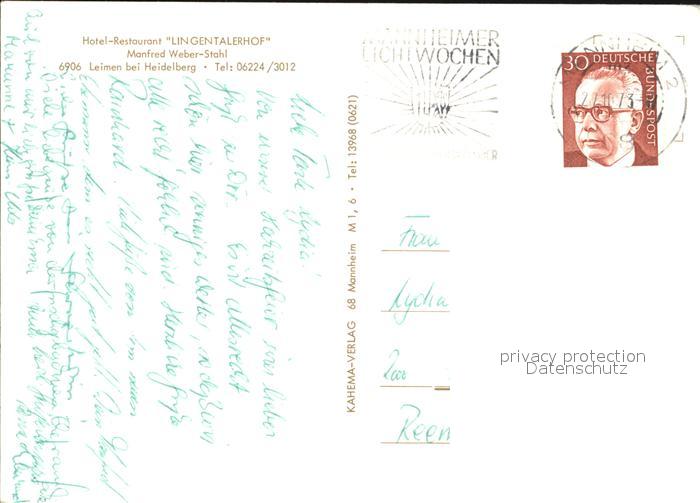 72430687 alte Postkarte Leimen Hotel Restaurant Lingentalerhof postalisch gelaufen Erhaltung siehe scans KatCode: 11110008226041