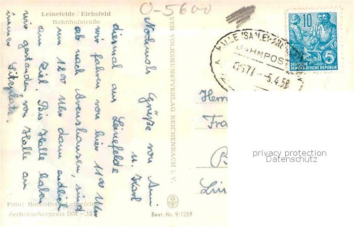 32658539 alte Postkarte Leinefelde Bahnhofstrasse postalisch gelaufen Erhaltung siehe scans [AndreD76] KatCode: 11110016061115