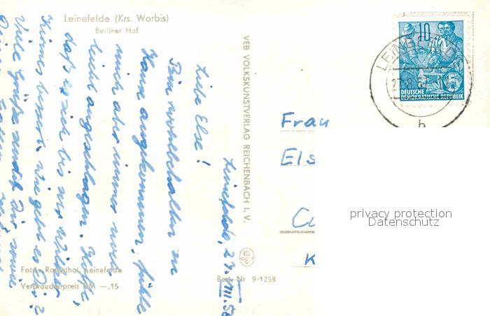 72728794 alte Postkarte Leinefelde Berliner Hof Gaststaette Restaurant postalisch gelaufen Erhaltung siehe scans [FriedD77] KatCode: 11110016061115
