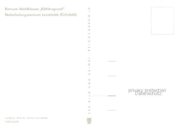 73570114 Leinefelde Konsum Waldklause Koehlersgrund Naherholungszentrum postalisch nicht gelaufen Erhaltung siehe scans [FriedD77] KatCode: 11110016061115