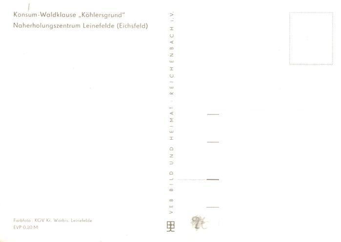 73914851 Leinefelde-Worbis Konsum Waldklause Koehlersgrund Gastraeume Garten postalisch nicht gelaufen Erhaltung siehe scans [WerneD78] KatCode: 11110016061115