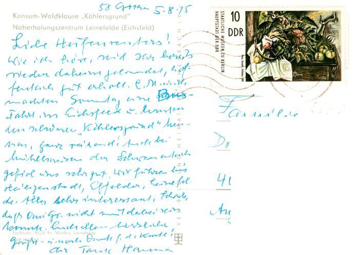 73916951 alte Postkarte Leinefelde-Worbis Konsum Waldklause Koehlersgrund Gastraeume Park postalisch gelaufen Erhaltung siehe scans [WerneD78] KatCode: 11110016061115