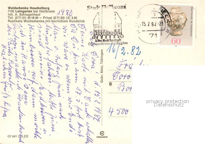 73726113 alte Postkarte Leingarten Waldschenke Heuchelberg Gastraeume Biergarten Schwaene postalisch gelaufen Erhaltung siehe scans [FriedD77] KatCode: 11110008125058