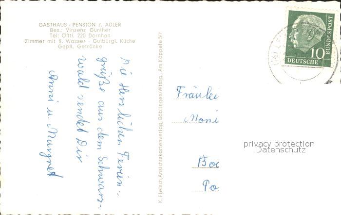 72114360 alte Postkarte Leinstetten Gasthaus Pension Zum Adler Landkarte Schwarzwald postalisch gelaufen Erhaltung siehe scans KatCode: 11110008325012