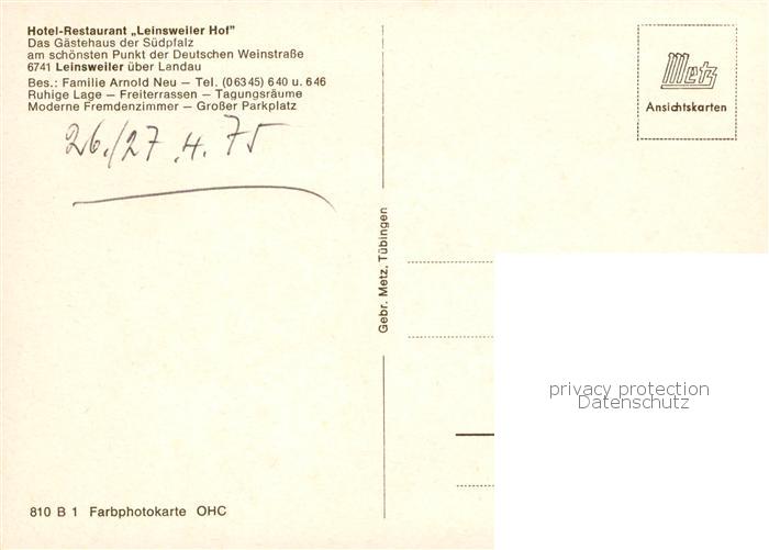 73846031 Leinsweiler Hotel Restaurant Leinsweiler Hof postalisch nicht gelaufen Erhaltung siehe scans [FriedD77] KatCode: 11110007337051
