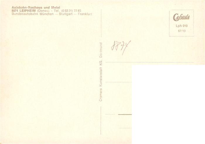 73924575 Leipheim Autobahn Rasthaus und Motel postalisch nicht gelaufen Erhaltung siehe scans [WerneD78] KatCode: 11110009774155