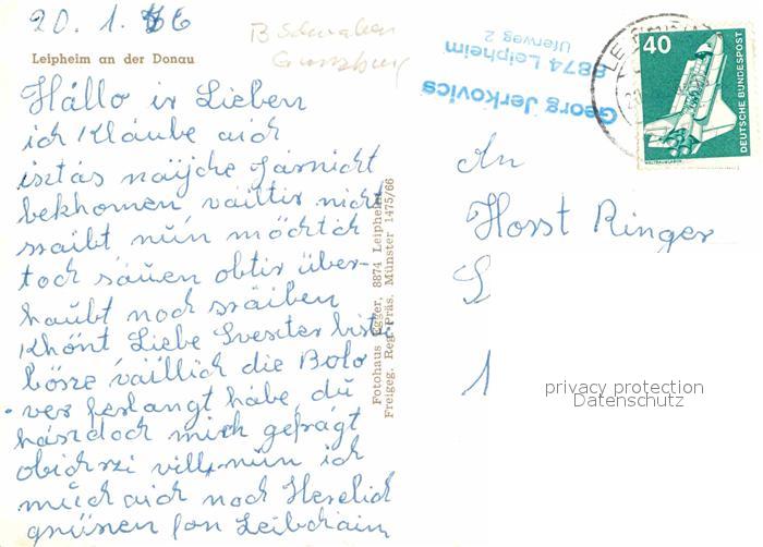 72904735 alte Postkarte Leipheim Fliegeraufnahme postalisch gelaufen Erhaltung siehe scans [AndreD76] KatCode: 11110009774155