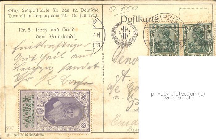 41527583 Leipzig 12.Deutsches Turnfest v.12.-16.Juli 1913 (Sonderstempel m.Vignette) KatCode 11110014365000