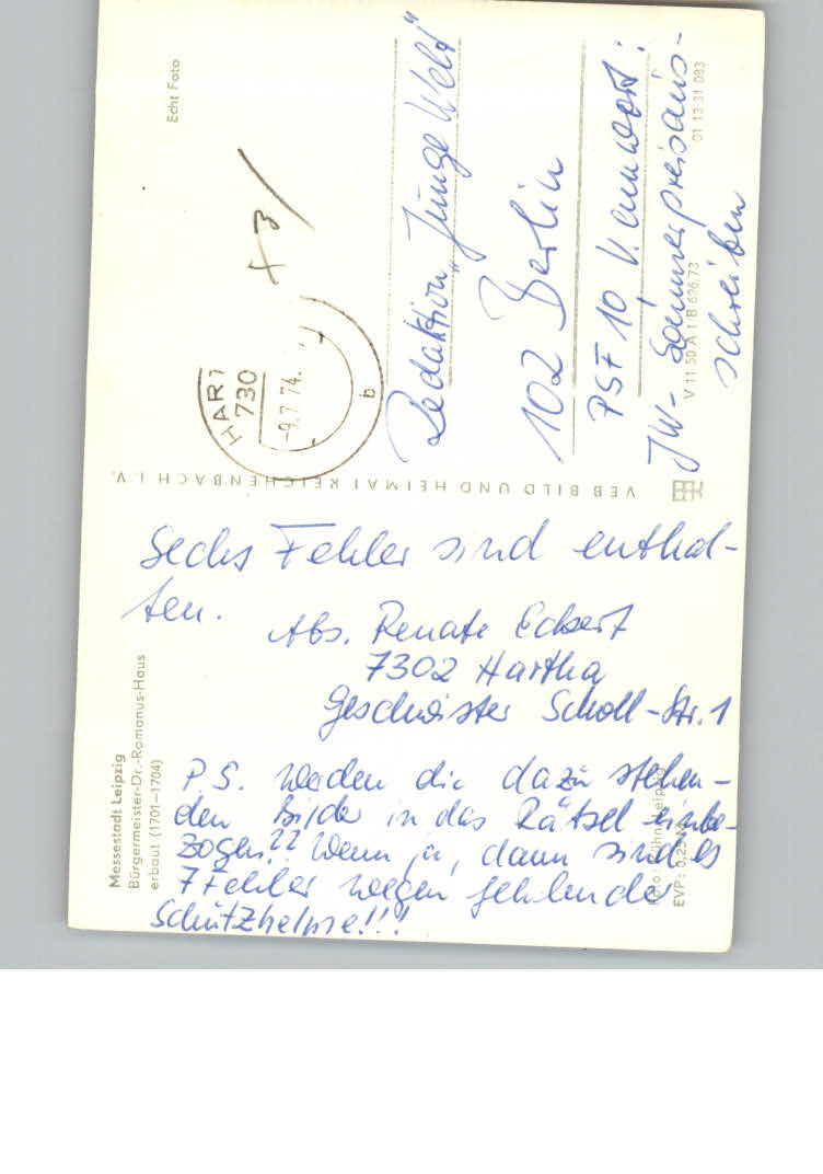 31167008 Leipzig postalisch nicht gelaufen KatCode: 11110014365000