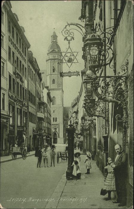 30727414 alte Postkarte Leipzig Burgstrasse Thueringer Hof postalisch gelaufen KatCode: 11110014365000