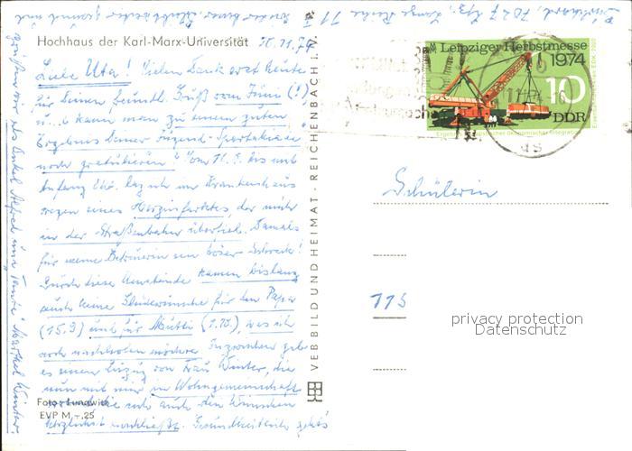 alte Postkarte Leipzig Hochhaus der Karl Marx Universitaet postalisch gelaufen Erhaltung siehe scans