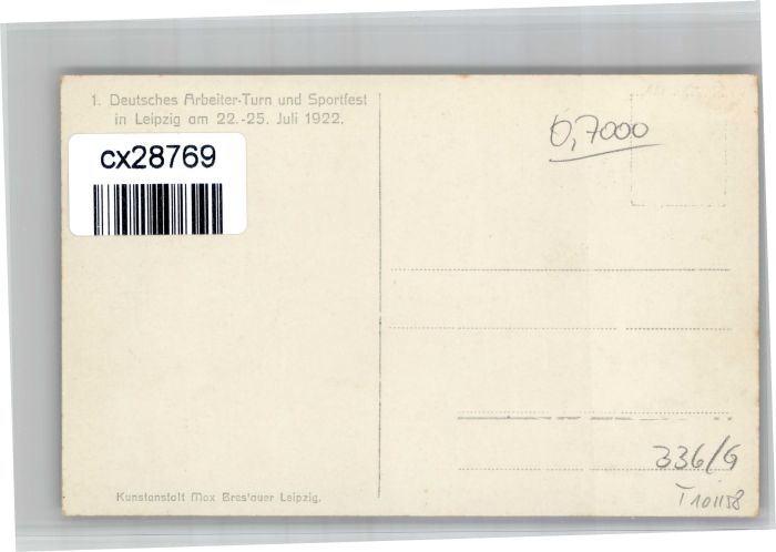 30910169 Leipzig I. Deutsches Arbeiter Turn- und Sportfest postalisch nicht gelaufen KatCode: 11110014365000