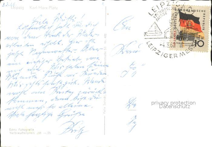 alte Postkarte Leipzig Karl Marx Platz postalisch gelaufen Erhaltung siehe scans