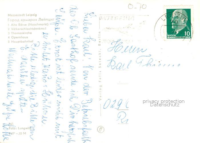 73037880 alte Postkarte LEIPZIG Sachsen Alte Boerse Voelkerschlachtdenkmal Thomaskirche Opernhaus Bahnhof postalisch gelaufen Erhaltung siehe scans [KathaD81] KatCode: 11110014365000