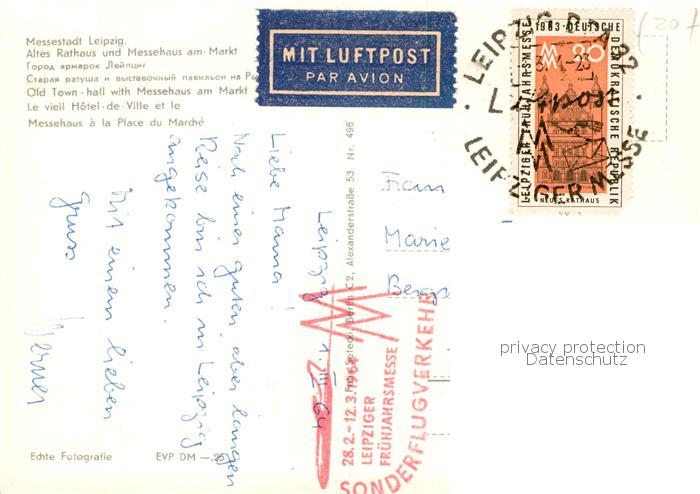 73835120 LEIPZIG Sachsen Altes Rathaus und Messehaus am Markt postalisch gelaufen Erhaltung siehe scans [WerneD78] alte Postkarte Wern Katcode 11110014365000