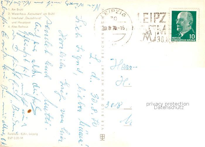 72934205 LEIPZIG Sachsen Am Bruehl Warenhaus Konsument am Bruehl Interhotel Deutschland und Hauptpost Altes Rathaus postalisch nicht gelaufen Erhaltung siehe scans [WerneD78] KatCode: 11110014365000