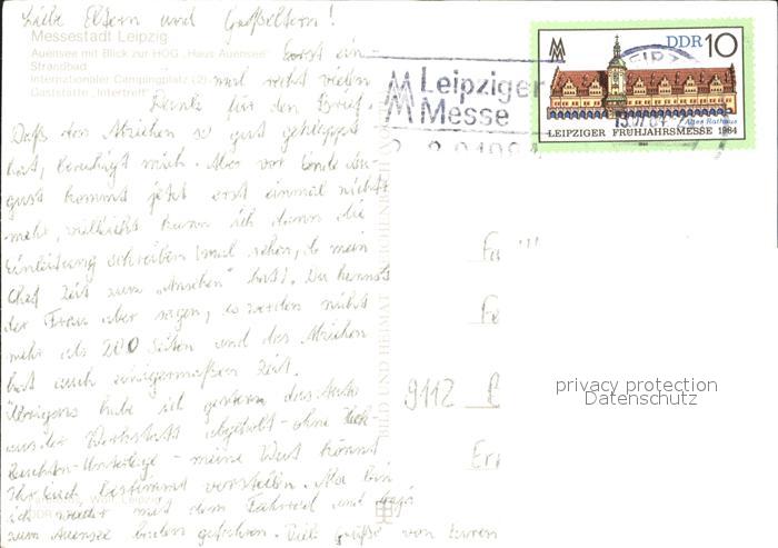 72289406 alte Postkarte LEIPZIG Sachsen Auensee Strandbad Internationale Campingplatz postalisch gelaufen Erhaltung siehe scans KatCode: 11110014365000