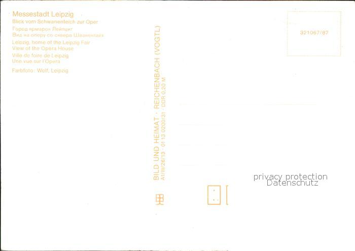 72600619 LEIPZIG Sachsen Blick vom Schwanenteich zur Oper Messestadt postalisch nicht gelaufen Erhaltung siehe scans [FriedD77] KatCode: 11110014365000
