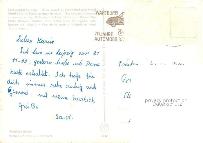 73065975 alte Postkarte LEIPZIG Sachsen Blick zum Hauptbahnhof und Hotel Stadt Leipzig Strassenbahn postalisch gelaufen Erhaltung siehe scans [FriedD77] KatCode: 11110014365000