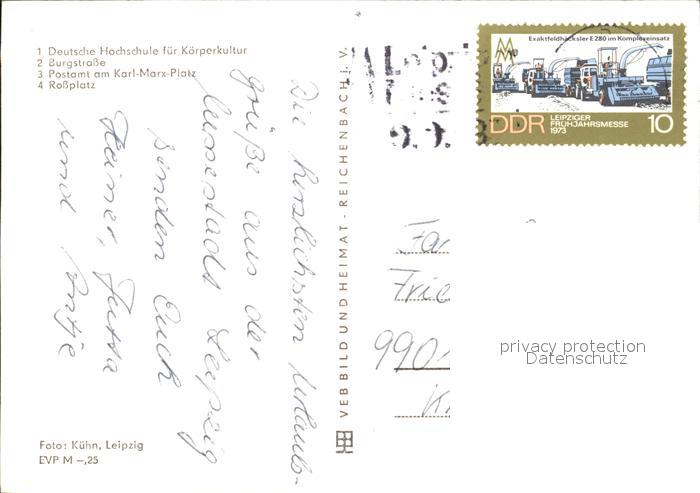 72475400 alte Postkarte LEIPZIG Sachsen Deutsche Hochschule fuer Koerperkultur Burgstrasse Postamt Karl Marx Platz Rossplatz postalisch gelaufen Erhaltung siehe scans KatCode: 11110014365000