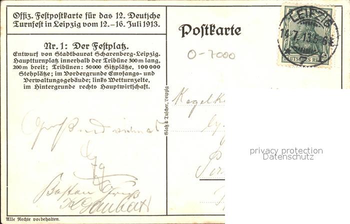 42525971 alte Postkarte LEIPZIG Sachsen Festplatz 12. Deutsches Turnfest Offizielle Festpostkarte Nr 1 Litho postalisch gelaufen Erhaltung siehe scans KatCode: 11110014365000