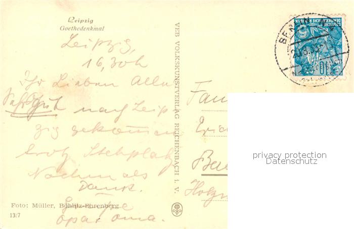 73096975 alte Postkarte LEIPZIG Sachsen Goethedenkmal postalisch gelaufen Erhaltung siehe scans [KathaD81] KatCode: 11110014365000