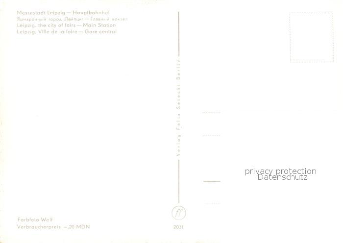 73013745 LEIPZIG Sachsen Hauptbahnhof postalisch nicht gelaufen Erhaltung siehe scans [WerneD78] KatCode: 11110014365000
