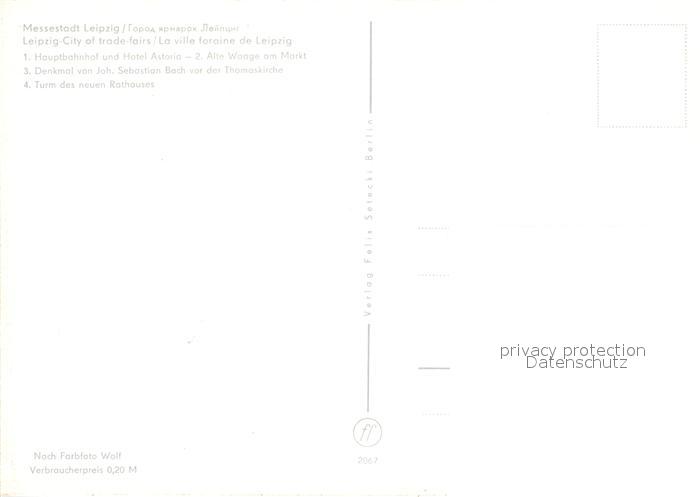 73013747 LEIPZIG Sachsen Hauptbahnhof HOtel Astoria Alte Waage am Markt Denkmal Joh Seb Bach Thomaskirche Turm des Neuen Rathauses postalisch nicht gelaufen Erhaltung siehe scans [WerneD78] KatCode: 11110014365000
