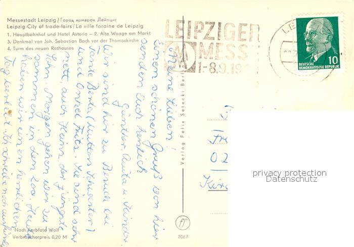 73148994 alte Postkarte LEIPZIG Sachsen Hauptbahnhof Hotel Astoria Alte Waage Markt Bachdenkmal Thomaskirche Turm Rathaus postalisch gelaufen Erhaltung siehe scans [FriedD77] KatCode: 11110014365000