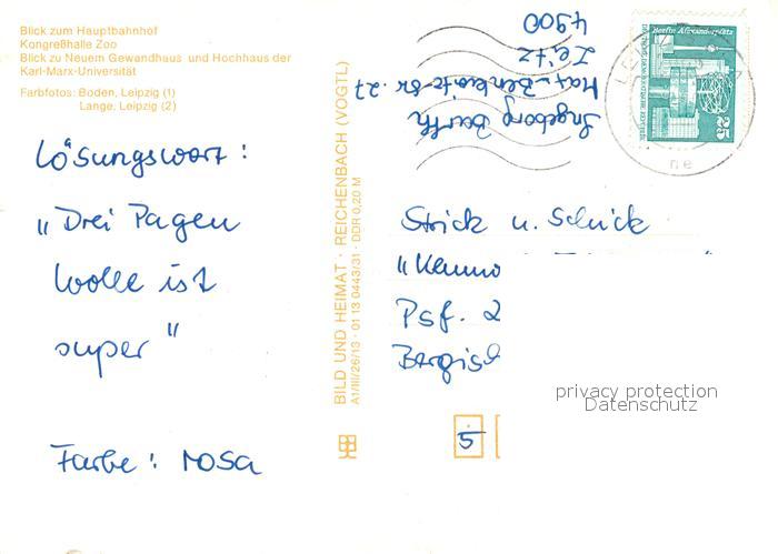 73110961 alte Postkarte LEIPZIG Sachsen Hauptbahnhof Kongresshalle Zoo Karl-Marx-Universitaet postalisch gelaufen Erhaltung siehe scans [NatalD47] KatCode: 11110014365000