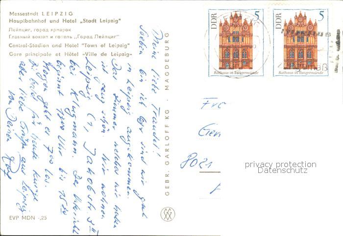 72298221 alte Postkarte LEIPZIG Sachsen Hauptbahnhof und Hotel Stadt Leipzig postalisch gelaufen Erhaltung siehe scans KatCode: 11110014365000