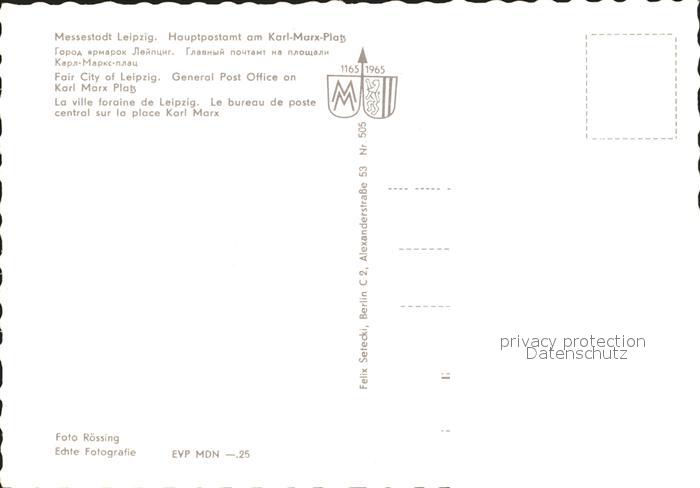 72020349 LEIPZIG Sachsen Hauptpostamt am Karl-Marx-Platz postalisch nicht gelaufen Erhaltung siehe scans KatCode: 11110014365000