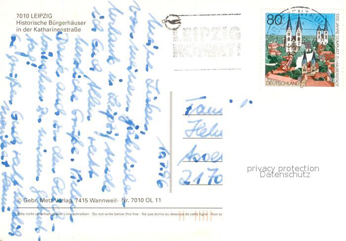 73574297 alte Postkarte LEIPZIG Sachsen Historische Buergerhaeuser Katharinenstrasse Blumenbeet postalisch gelaufen Erhaltung siehe scans [FriedD77] KatCode: 11110014365000