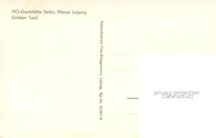 73777932 LEIPZIG Sachsen HO Gaststaette Technische Messe Grosser Saal postalisch nicht gelaufen Erhaltung siehe scans [FriedD77] KatCode: 11110014365000