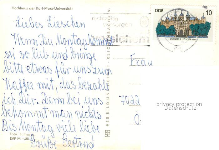 73134941 alte Postkarte LEIPZIG Sachsen Hochhaus der Karl Marx Universitaet postalisch gelaufen Erhaltung siehe scans [FriedD77] KatCode: 11110014365000