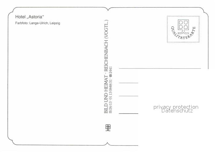 72697730 LEIPZIG Sachsen Hotel Astoria Messestadt postalisch nicht gelaufen Erhaltung siehe scans [FriedD77] KatCode: 11110014365000