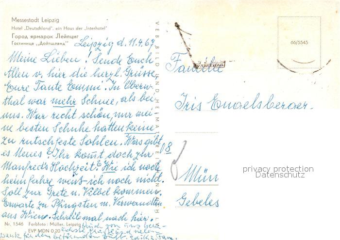73070075 alte Postkarte LEIPZIG Sachsen Hotel Deutschland Interhotel postalisch gelaufen Erhaltung siehe scans [KathaD81] KatCode: 11110014365000