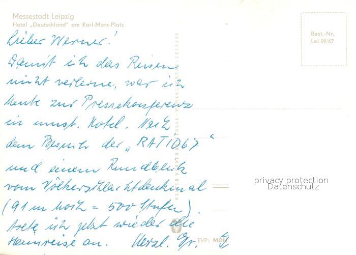 73104801 LEIPZIG Sachsen Hotel Deutschland Karl Marx Platz postalisch nicht gelaufen Erhaltung siehe scans [WerneD78] KatCode: 11110014365000