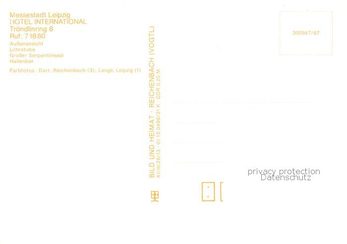 73859355 LEIPZIG Sachsen Hotel International Restaurant Bar postalisch nicht gelaufen Erhaltung siehe scans [FriedD77] Frie Katcode 11110014365000