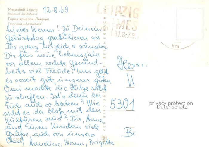 73678903 alte Postkarte LEIPZIG Sachsen Interhotel Deutschland Messestadt postalisch gelaufen Erhaltung siehe scans [FriedD77] KatCode: 11110014365000