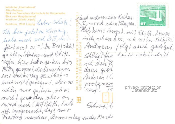 73012018 alte Postkarte LEIPZIG Sachsen Interhotel International Altes Rathaus Dt Hochschule fuer Koerperkultur Hauptbahnhof Interhotel Stadt Leipzig postalisch gelaufen Erhaltung siehe scans [WerneD78] KatCode: 11110014365000
