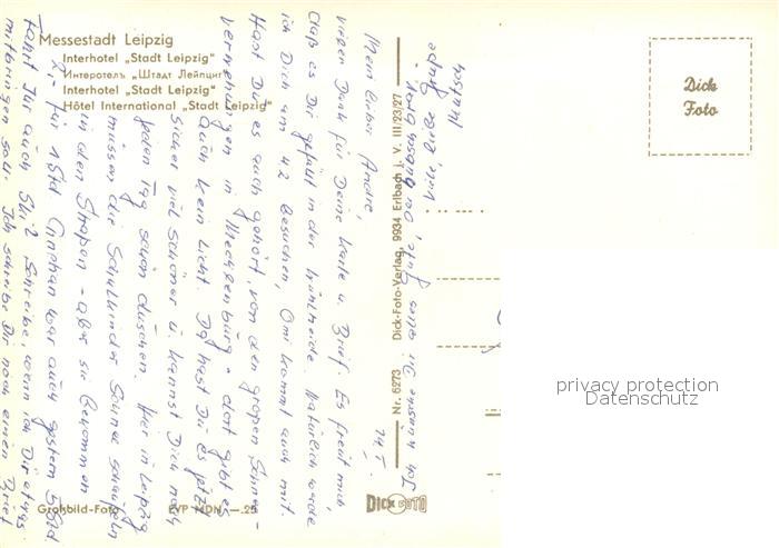 73118832 LEIPZIG Sachsen Interhotel Stadt Leipzig postalisch nicht gelaufen Erhaltung siehe scans [LiesaD40] KatCode: 11110014365000
