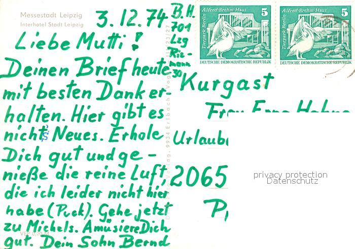 73104806 alte Postkarte LEIPZIG Sachsen Interhotel Stadt Leipzig postalisch gelaufen Erhaltung siehe scans [WerneD78] KatCode: 11110014365000