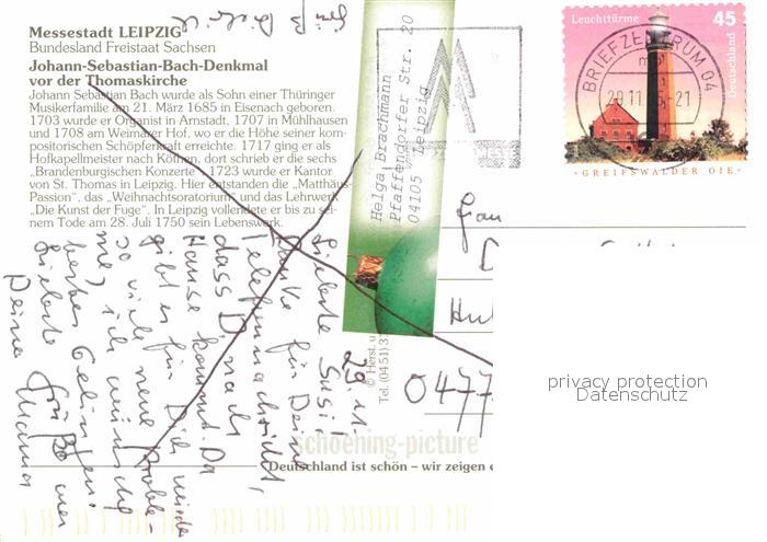 72872710 alte Postkarte LEIPZIG Sachsen Johann Sebastian Bach Denkmal postalisch gelaufen Erhaltung siehe scans [LiesaD40] KatCode: 11110014365000