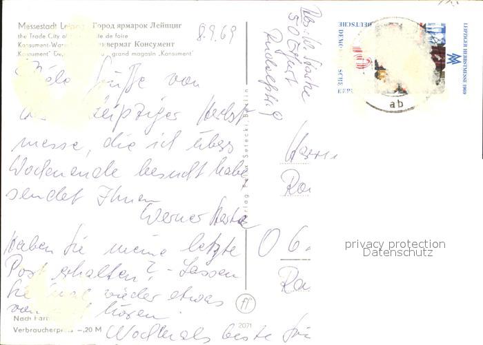 72542919 alte Postkarte LEIPZIG Sachsen Konsum Warenhaus postalisch gelaufen Erhaltung siehe scans [AndreD76 kv012box] KatCode: 11110014365000