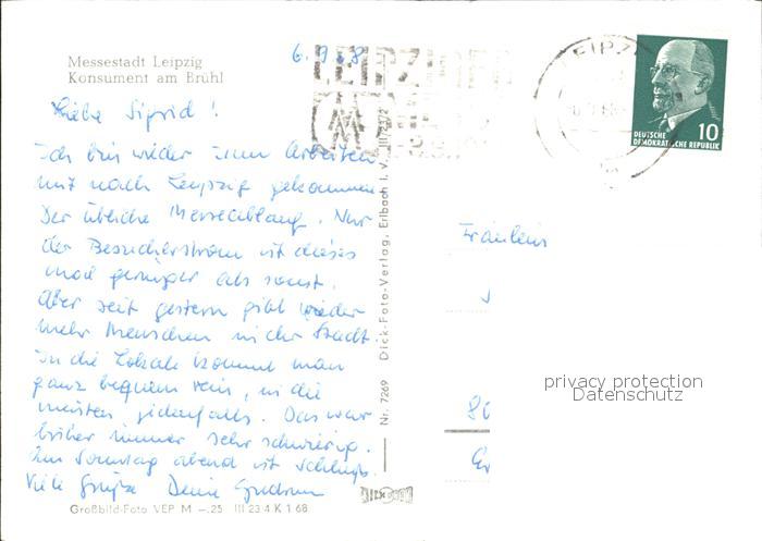 72092769 alte Postkarte LEIPZIG Sachsen Konsument am Bruehl postalisch gelaufen Erhaltung siehe scans KatCode: 11110014365000
