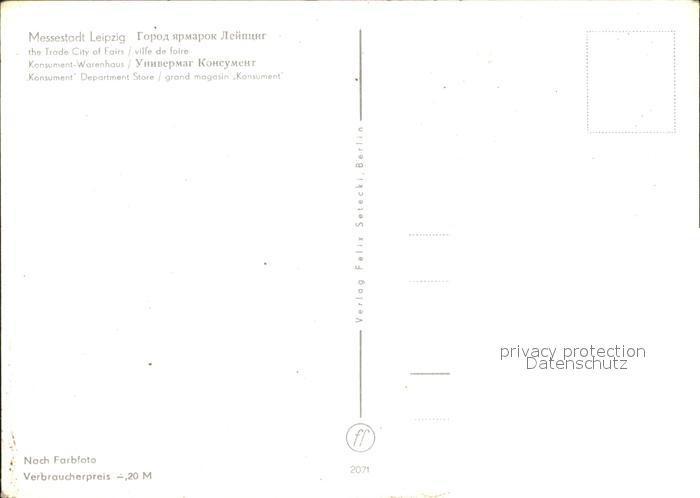 71946944 LEIPZIG Sachsen Konsument Warenhaus postalisch nicht gelaufen Erhaltung siehe scans KatCode: 11110014365000