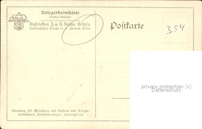 41497967 LEIPZIG Sachsen Kriegerheimstaette postalisch nicht gelaufen KatCode: 11110014365000